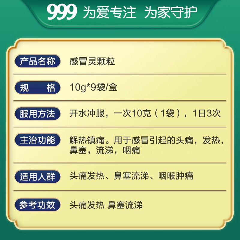 产品名称:[999]三九感冒灵颗粒10g*9袋/盒